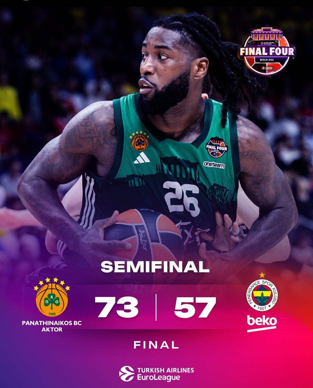 Motley bu kadar kötü değil ve Lassort ile savaşacak tek oyuncu oydu. Panatinaikos’da sezonun tamamını çok iyi geçiren Slaukas ve Mitoglou çok kötü performans sergilerken, Koç Ataman genelde az oyuncu ile oynadığı sisteminin aksine rotasyonu çok genişletip ve savunmayı ön plana çıkarınca üstünlüğü ele almış oldu.