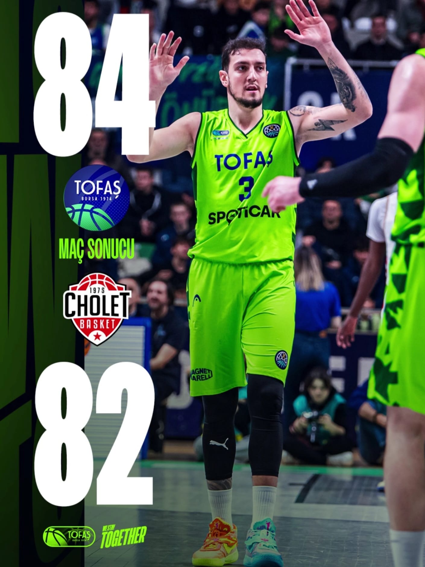 Seyrettiğim en vasat takımlardan biri olan Cholet karşısında rahat götürdüğümüz oyunu son çeyrekte, Tofaş’ta ‘koç’un devreye girmesi yok her zamanki gibi girmemesiyle çok zora soktuk. Son topa bıraktık ve 84-82 kazanarak son 16’ya kaldık.