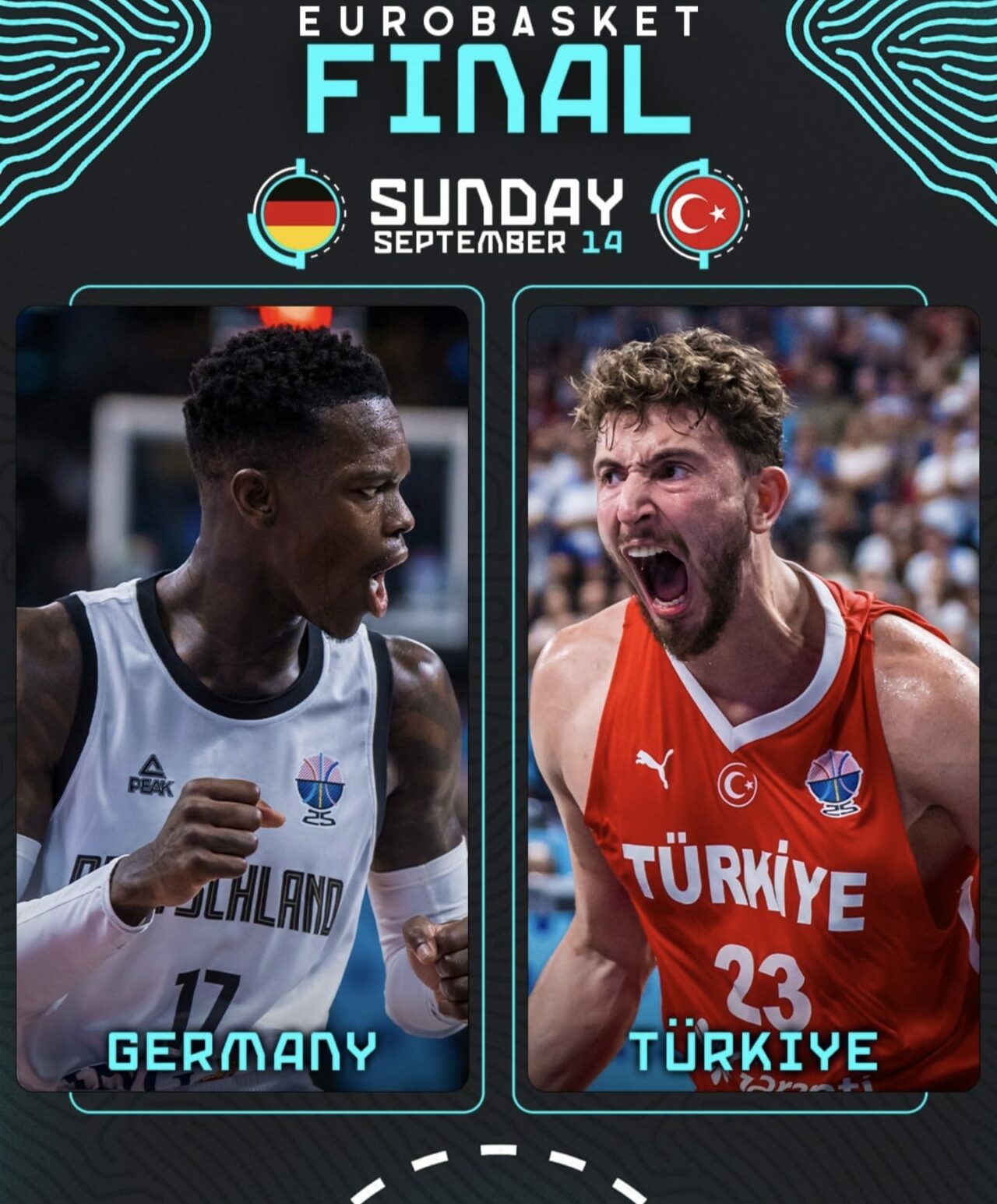 Finalde rakip Almanya; son yıllarda bu tür maçlarda çok tecrübeliler. Finlandiya’yı tecrübe farkıyla çok rahat geçip finale kaldılar. Özellikle son maçlarda kötü yüzde ile oynayan Schroder ve Wagner yarı finalde en iyi oyunlarıyla sahadaydılar. Bu winner oyunculara çok dikkat ederken, diğer NBA oyuncuları Da Silva’yı da unutmamalıyız.