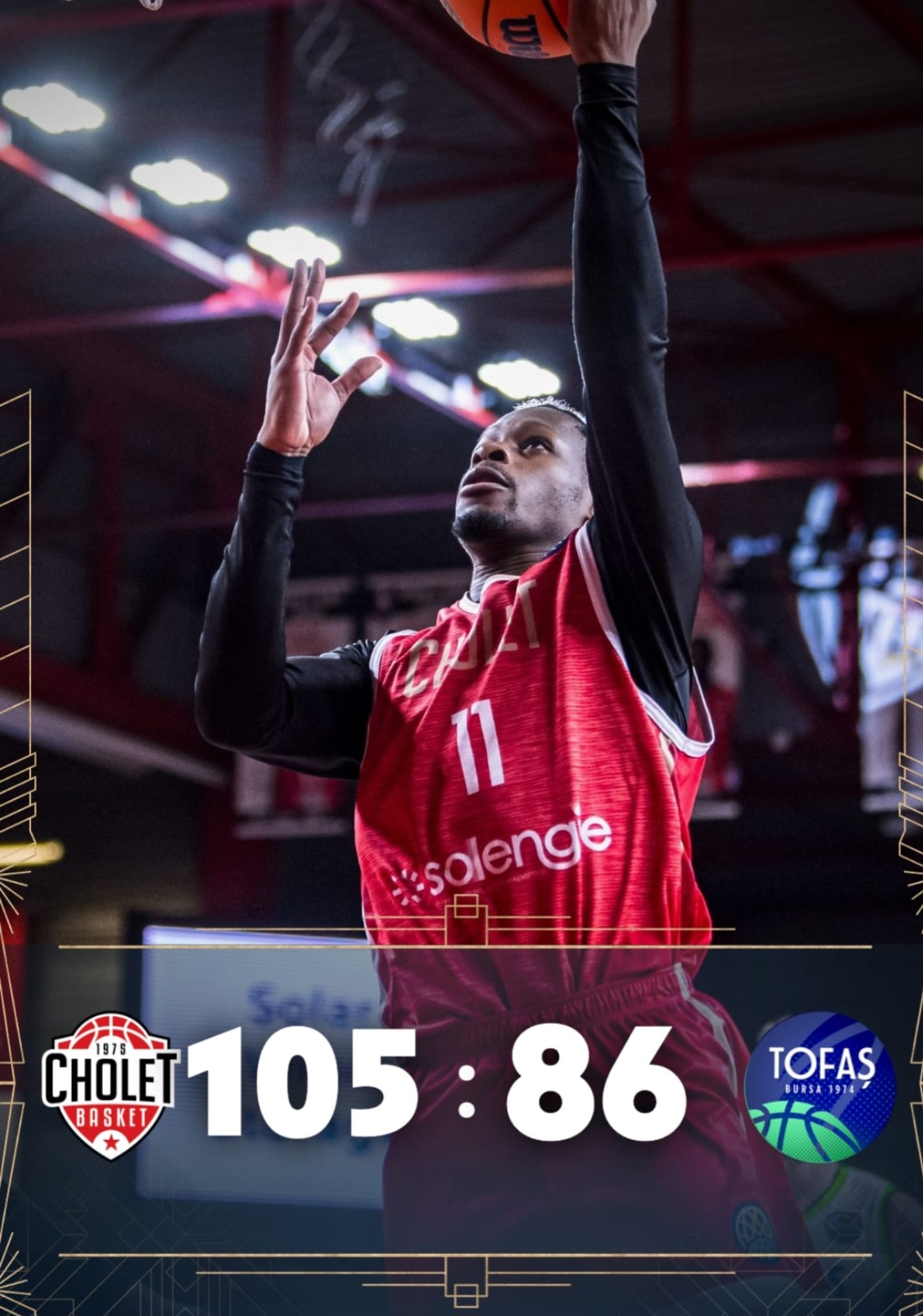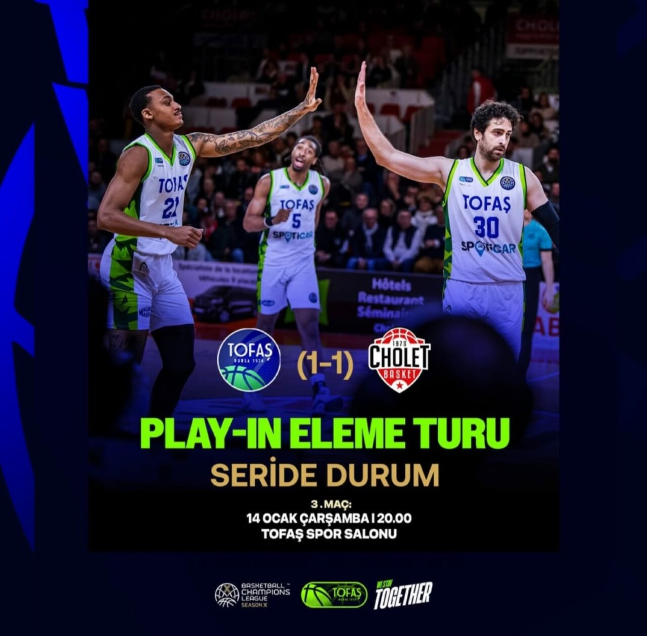 Hava şartlarından, yolculuk nedeniyle bir gün gecikmeli oynanan maçı Fransa’da Cholet, TOFAŞ’ı hiç yanına yaklaştırmadan 105-86 kazanarak turu Bursa’da son maça bıraktı.