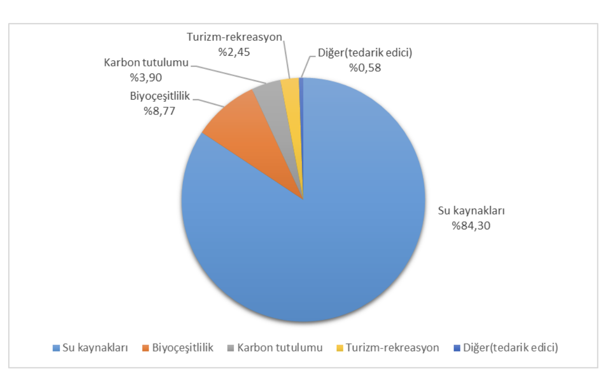 Bu ekosistemden aldığımız faydaları kısaca 10 kategoride sınıflıyoruz. Tedarik edici faydalar; tarım faaliyeti kaynaklı bitkisel üretim ve hayvansal üretim, endüstriyel odun ve yakacak odun üretimi, hayvanların otlatılması, odun dışı orman ürünlerinden sağlanan fayda ve arıcılık faaliyetinden sağlanan fayda. Regüle edici yani düzenleyici dediğimiz faydalarda karbon tutulumu, biyoçeşitlilik faydaları ve sıcak gündemimiz olan “Su Kaynakları”ndan sağladığımız faydalar geliyor. Sosyo-ekonomik faydalarda da şehrimizin olmazsa olmazı turizm-rekreasyon faydaları geliyor. Dolayısıyla bu fayda kategorilerinin ayrı ayrı analiz edilmesi gerekiyor. En başta mevcut durumun ortaya konması sonrasında ise iktisadi “fayda/zarar” ların belirlenmesi gerekiyor. Kaynakların ekonomik değerinin ortaya konması ile bir yönetim önceliklendirmesi yapılması ise sonraki adım oluyor.