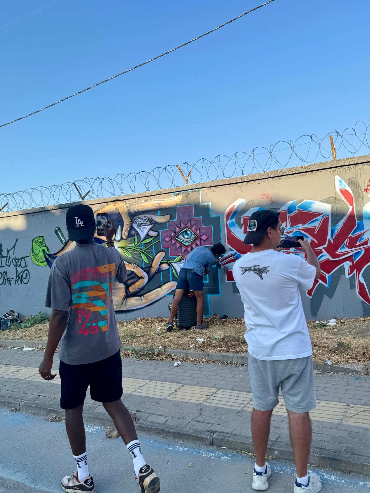Haftasonu 35-36 derece güneşin altında boyamak bizi zorlasa da imdadımıza çevre sakinleri ve yoldan geçen araçlar yetişiyor. İki gün içerisinde soğuk sular, sodalar, kolalar, incir ve hatta kavun dahi getiriyor insanlar. Sanatın birleştirici gücü bu olsa gerek!