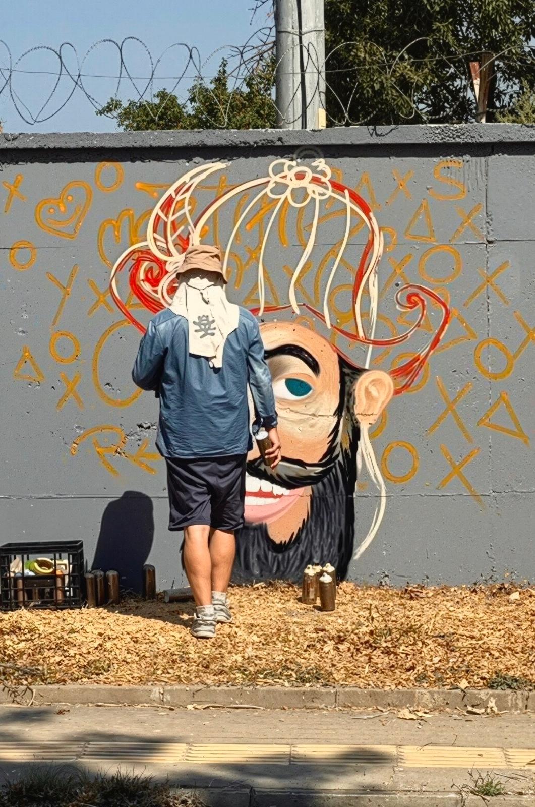 Sebastian’ı Muradiye’de kaldığı otelin hemen yakınından alıyorum ve Graffiti Festivali’ni yaptığımız ve devamını da boyayabileceğimizi düşündüğüm Altınşehir’deki hipodrom duvarlarına gidiyoruz. Bir yandan da festivaldeki sanatçıları, geldikleri ülkeleri stillerini konuşuyoruz.