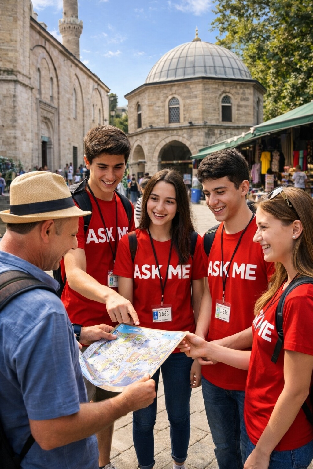 Gönüllü öğrencilerin, fark edilebilir olmaları için belirli kıyafetlerle, turistik noktalarda dolaştığı, turistlere yol gösterdiği bir sistem Bursa’da neden olmasın? Ortaokul ve lise çağındaki gençler için bu, sadece turiste yardım değil, yıllarca sınıfta öğrenilen İngilizcenin gerçek hayatta karşılık bulması ve bu sayade özgüven kazanmaları demek. Turist için ise şehirle ilk temasın daha sıcak ve güvenli olması anlamına geliyor. Alın size Kültür ve Turizm Bakanlığı ile Milli Eğitim Bakanlığı’nın yürütücüsü olduğu Avrupa Birliği’nden çok kolay fon alınabilecek bir proje örneği!