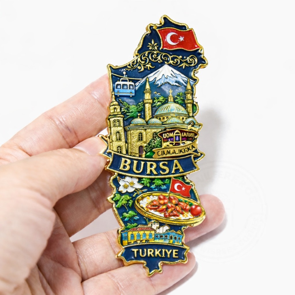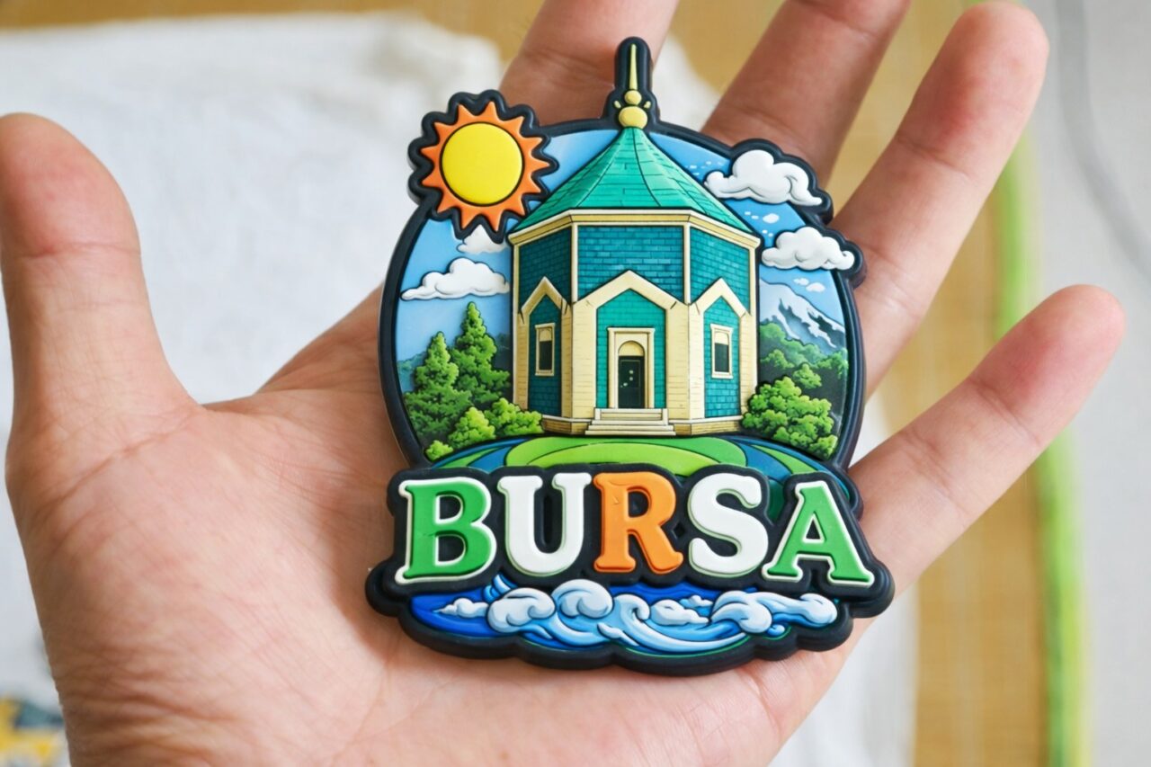 Düşünün; Uludağ sadece bir dağ silueti olarak değil, kabartmalı seramik bir yüzeyde mevsim geçişleriyle anlatılamaz mı? Ulu Cami’nin içindeki hat kompozisyonlarından ilham alan tipografik bir seri yapılamaz mı? Cumalıkızık evlerinin pastel tonları, mat emaye kaplı metal bir koleksiyon olarak çalışılamaz mı? İpek dokusunu çağrıştıran tekstil yüzeyli bir magnet Bursa’ya yakışmaz mı?