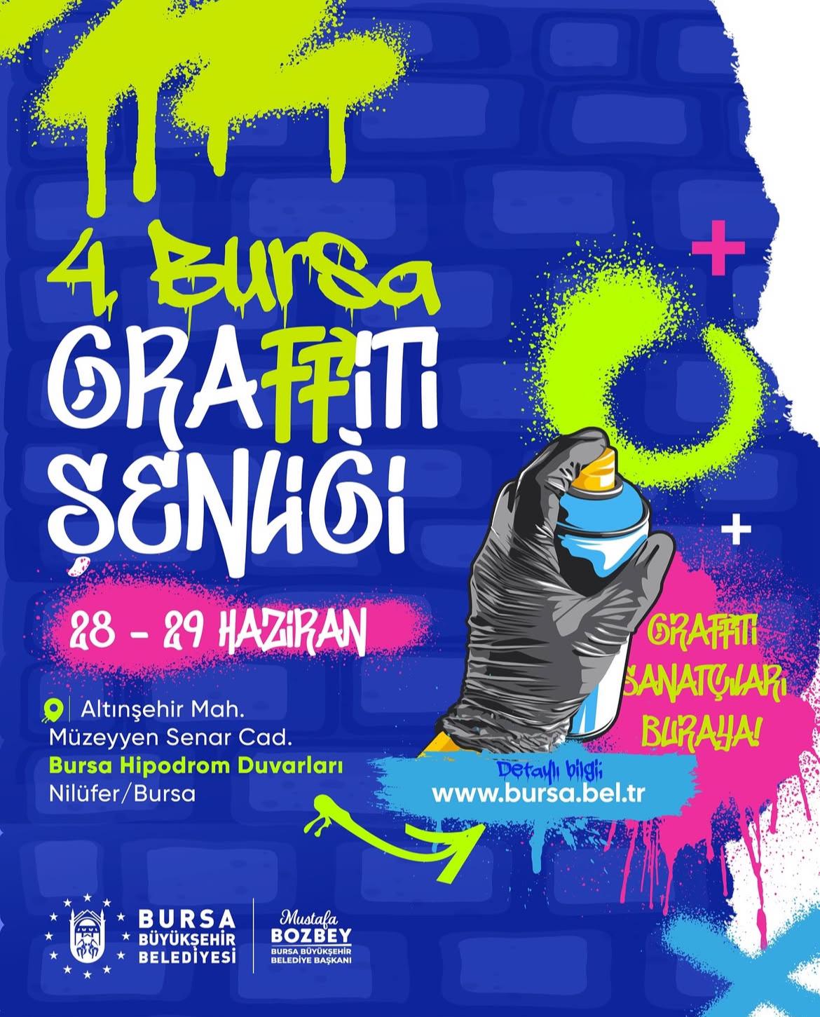 Geçtiğimiz hafta bu köşede duyurduğum gibi, Bursa Graffiti Festivali 28-29 Haziran’da Altınşehir Mahallesi’ndeki Hipodrom Duvarları’nda gerçekleşecek.