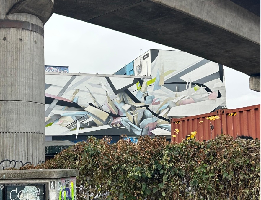 Önce şu OZM meselesini aradan çıkaralım. Büyük bir hevesle, OZ’un anısını yaşatmak için yapılan sanat galerisini yakından görebilmek umuduyla galerinin kapısına dayandım. Ancak ne yazık ki karşılaştığım şey sanat dolu duvarlar değil, kilitli kapılar oldu. “Belki öğle arasındadırlar, belki randevu gerekiyordur” diyerek iyimserliğimi korudum. Mailler attım, sosyal medyadan mesajlar yolladım, telefonla dahi ulaşmaya çalıştım ancak ne yazık ki, hiçbir geri dönüş alamadım. Galerinin dışarıdan birkaç fotoğrafını ve yan duvarındaki başka bir Alman graffitici olan, efsanevi 3 boyutlu duvarlarıyla bildiğimiz Mirko “Daim” Reisser’in bir eserinin fotoğrafını çekebildim.