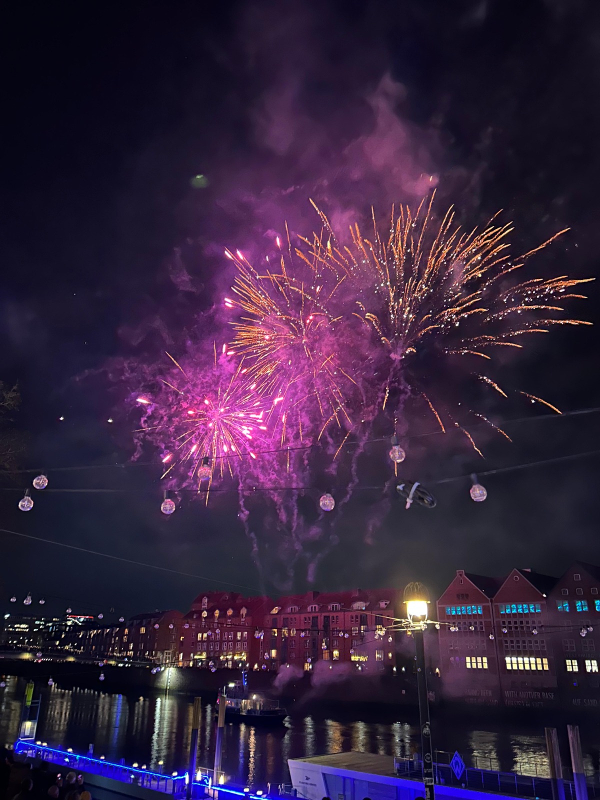 Şehir meydanları bir anda tarçın ve zencefil kokularıyla, rengarenk ışıklarla doldu taştı. Bremen’de denk geldiğimiz o muazzam havai fişek gösterisi ise gecenin finaliydi. Gökyüzü binbir renge boyanırken, nehirdeki gemiden atılan fişeklerin yoğunluğundan geminin alev alacağından korksak da, gecenin sonunda Shire’a havaifişek patlatmaya gelen Gandalf’ı gören Hobbitler gibi şendik!