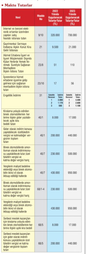 Bilindiği üzere Gelir Vergisi Kanunu’nda yer alan ve 2023 yılında uygulanacak bazı had ve tutarlar artırıldı.