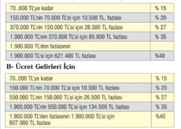 A- Ücret Gelirleri Dışında Kalan Diğer Gelirler İçin