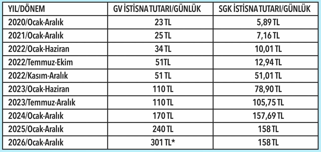 Gelir Vergisi ve SGK yemek istisna tutarları