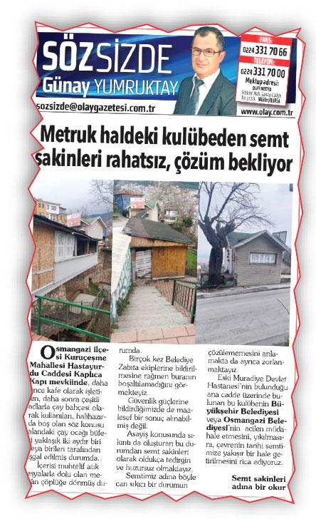 Hiçbir güvenlik önlemi alınmadan, yandaki 2 binanın bu yıkım esnasında bir tehlike yaşayıp yaşamayacağı analiz edilmeden, hafta sonu sokağa çıkma yasağı olduğu, herkesin çoluk cocuğuyla evde olmak zorunda olduğu bir günde böyle düzensiz, plansız, rastgele bir yıkım Osmangazi Belediyesi’ne hiç yakışmadı.