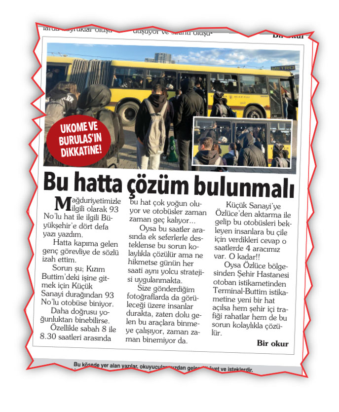 11 Ekim 2022 tarihli Olay gazetesi Söz Sizde köşenizde yayımlanan okur yazısı ile ilgili olarak, “Bu Hatta Çözüm Bulunmalı’’ başlıklı konuya cevabımızın aşağıdaki şekilde olduğunu iletmek isteriz.