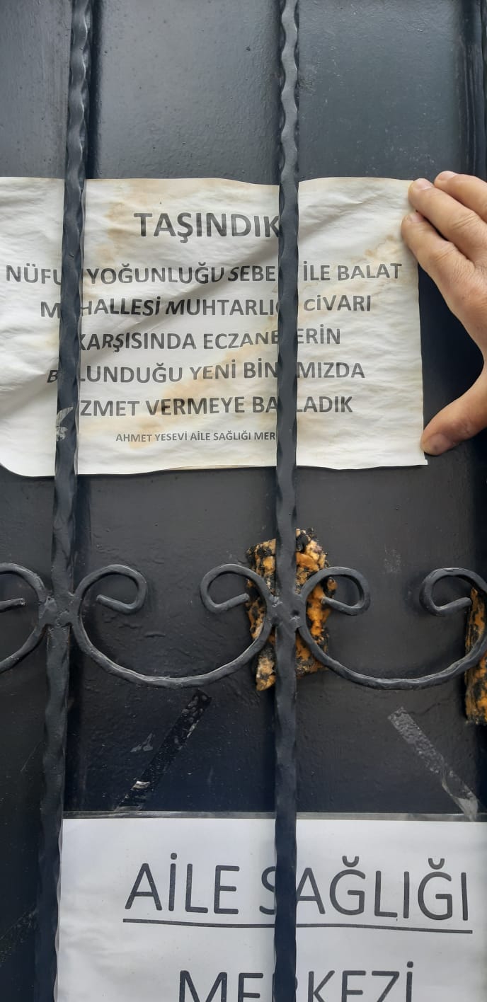 Nilüfer ilçesi Ahmet Yesevi Mahallesi’ndeki Aile Sağlığı Merkezimiz ‘nüfus yoğunluğu’ gerekçe gösterilerek kapatıldı ve Balat Mahallesi’ne taşındı. Neden, hangi gerekçe ile aile hekimliğimiz kapatıldı? Sürekli yapılaşan Ahmet Yesevi Mahallesi her geçen gün nüfusu artan bir bölge olmasına rağmen kapatılmasını mahalle sakinleri olarak anlayabilmiş değiliz. İl Sağlık Müdürlüğü’nün konuyu açıklık getirmesini ve sağlık ocağımızın mahalle sakinlerine hizmet vermeye devam etmesini talep ediyoruz.
