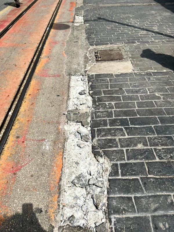 Şöyle ki; Cumhuriyet Caddesi’nde tramvay yolunda parke taşlar kırılmış. Taşlar parça parça yolda ve tramvay güzergâhında.