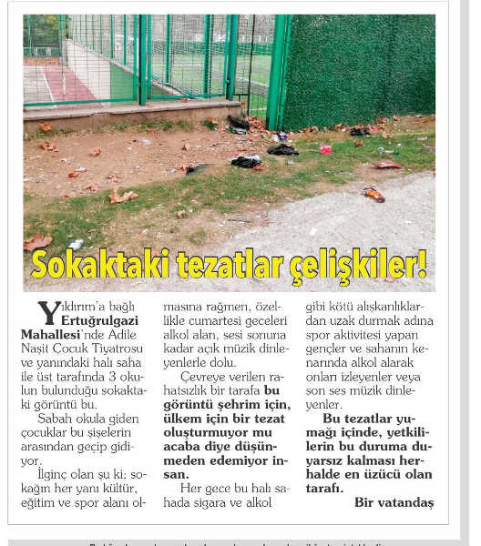 7 Aralık 2019 tarihli Olay gazetesinin Söz Sizde köşesinde yayımlanan “Sokaktaki Tezatlar Çelişkiler” başlıklı okur şikâyeti Belediyemiz Temizlik İşleri Müdürlüğü’nce incelenmiştir.