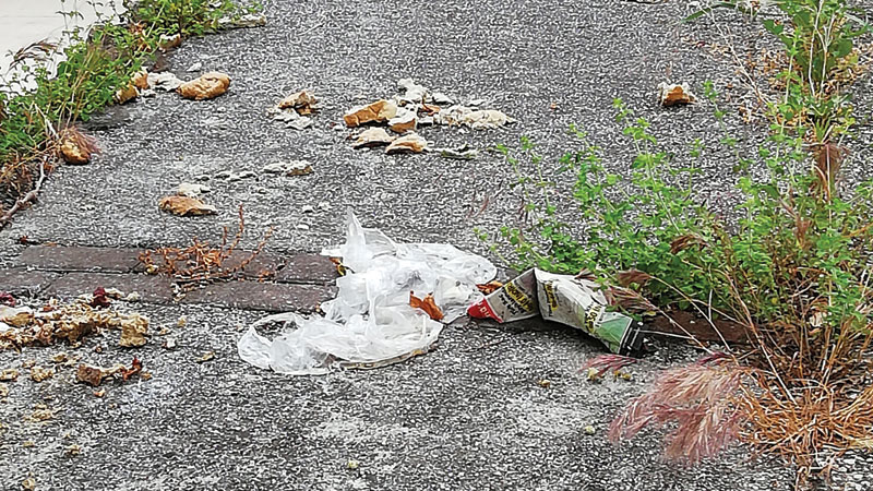 Yola veya kaldırıma atılmış bayat ekmekler, bazen gelişigüzel atılmış, bazen torba içerisinde. Yola, kaldırıma saçılmış vaziyette.