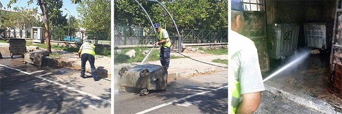 Ertuğrulgazi Mahallesi’ndeki çöp konteynerleri temizlendi