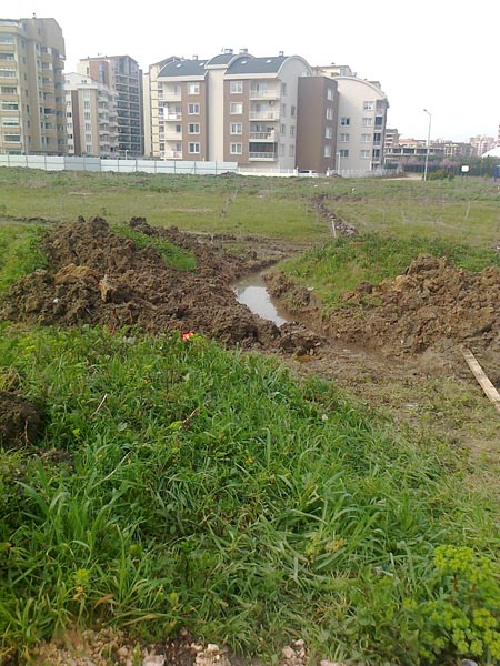 Altınşehir Mahallesi Aile Hekimliği Merkezinin yanında bulunan ve içinde yüzlerce genç ağaç fidanı dikili olan yeşil alanda son günlerde hummalı bir çalışma yapılıyor. Resimlerden de görüleceği üzere, bir yandan bataklık olan arazideki sular drenajla uzaklaştırılırken bir yandan da arazinin çevresi alüminyum panellerle kapatılıyor.