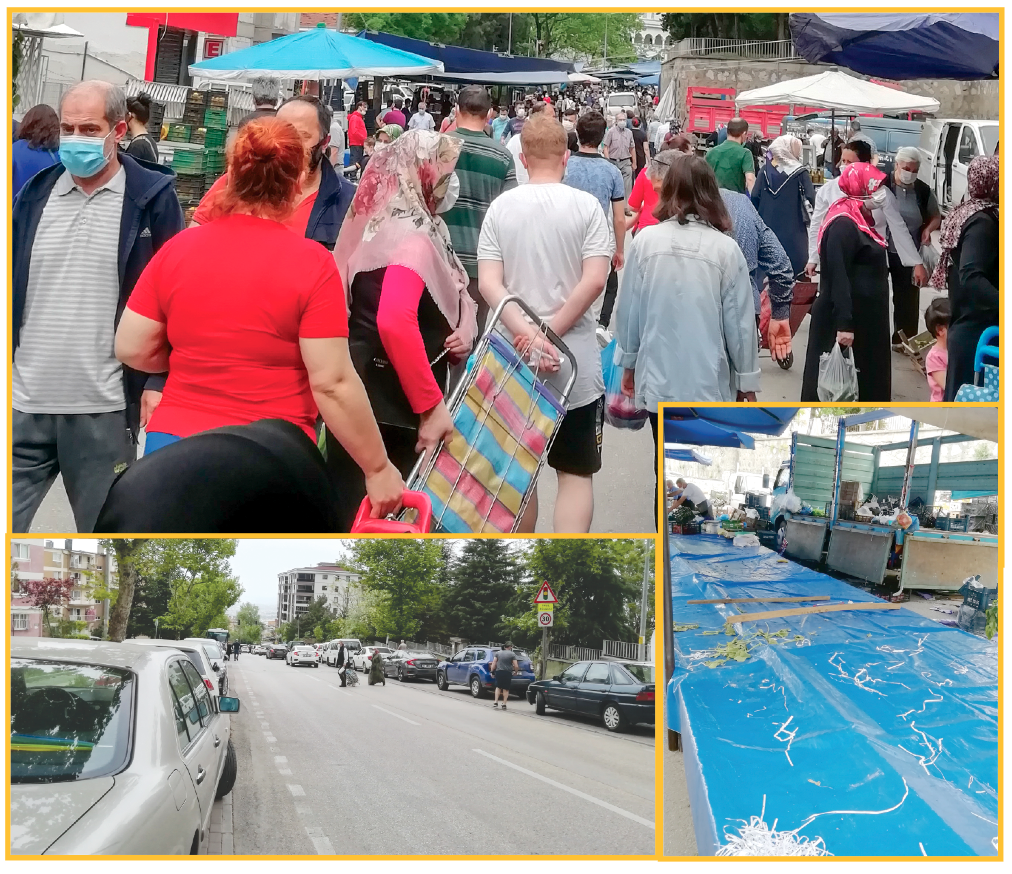 Fotoğraflar Yıldırım’daki Ertuğrulgazi Mahallesi’ndeki semt pazarından. Yoğunluktan dolayı sosyal mesafenin korunamadığı pazaryerine çevre mahallelerden araçlarıyla gelen vatandaşlar da cadde boyunca yoğunluk oluşturdu.