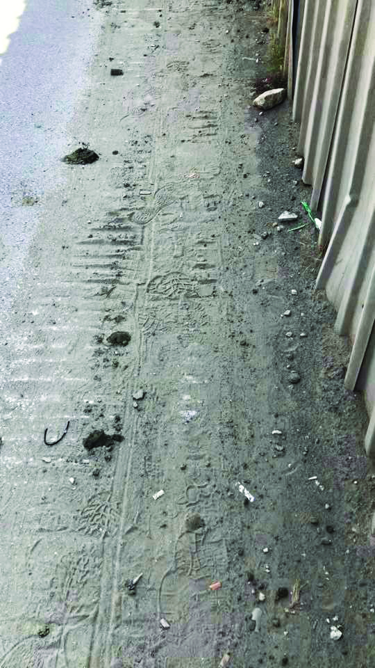 Beşyol lambaları Küçükbalıklı girişindeki inşaat sahasının yanındaki toprak birikintisinden yayalar toz toprak içerisinde yürümeye çalışıyor.