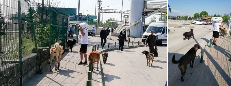 Muhtemel ki, buralarda besleniliyor bu hayvanlar. Kabul edelim gayet de sevimli görünüyorlar ama hepsinin bir anda havlamalarından tedirgin insanların korkusunu, sağa sola kaçışını ne yapacaksınız. Burası otobüs dolu, üzücü bir olay olsa ne olacak?