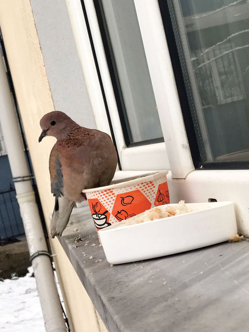Değerli okurum Merve Hanım 9 Şubat’ta “Soğuk Havalarda Sokak Hayvanlarını Unutmayın” başlıklı yazımız üzerine bu fotoğrafı göndermiş. Evinin camının önüne kuşlar için yiyecek bırakıyormuş sürekli. Duyarlılık gösteren iyi yürekli insanlara teşekkür ediyoruz.