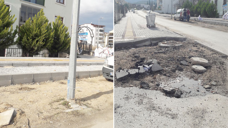 Yollarımız çamur içinde kaldı. Yolun ortasında kalan aydınlatma direği de cabası. Yetkililerden bu çalışmanın bir an önce bitirilmesini ve çamur mağduriyetinden kurtulmayı istiyoruz.
