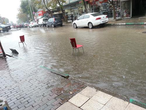 Bahar Mahallesi Dr. Sadık Ahmet Caddesi (Gençosman Ayakkabıcılar çarşısı) yağmurun biraz şiddetli yağması halinde fotoğrafta görüldüğü üzere adeta bir göl haline gelmektedir.