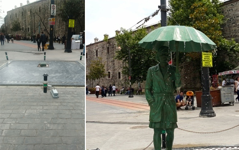 Cumhuriyet Caddesi girişinde Pirinç Han önüne konan Şemsiyeli Kadın Heykeli sürekli aynı akıbeti yaşıyor. Bölgeye ayrı bir görünüm kazandıran heykel bir kez daha yerinden sökülerek götürüldü.