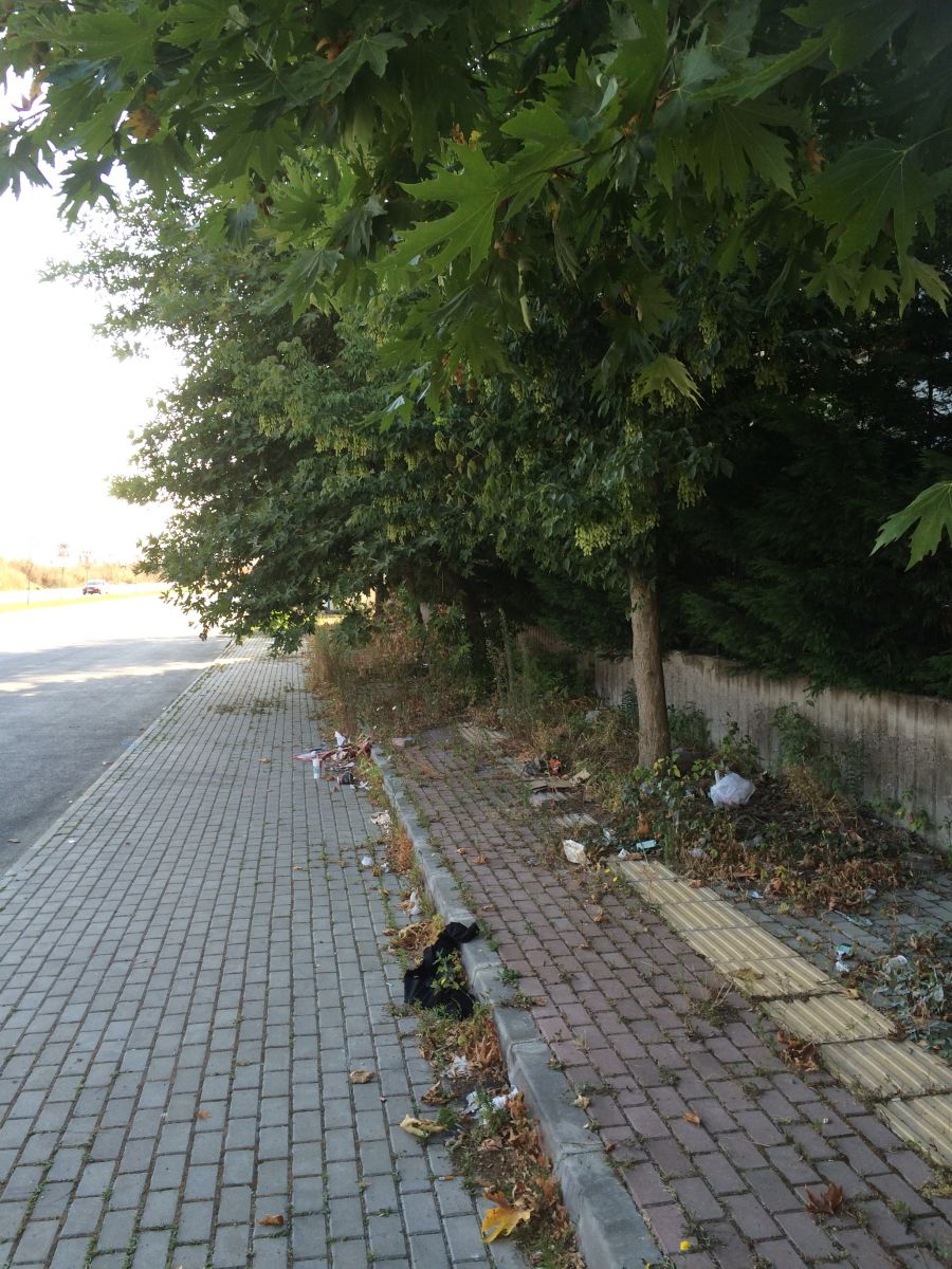 Özellikle Mudanya yönünün sağındaki kaldırımları otlar bürümüş durumda. Ayrıca, bir sitenin önündeki ağaçların kaldırımı kaplaması sonucu yürümek imkansız halde. En dramatik olanı da yarım kalmış bir inşaatın tuvaletinin ve malzemelerinin hala kaldırım üzerinde bulunması ve geçişe engel olması.