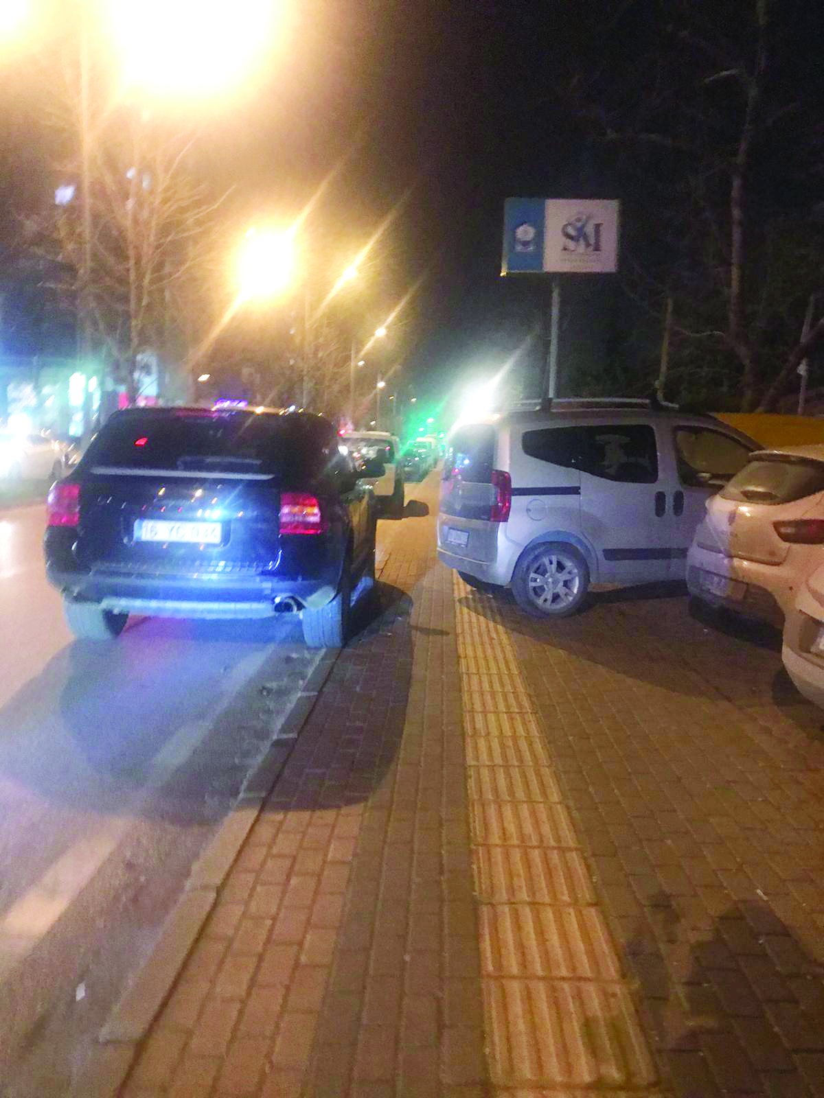 Park düzeni hiçe sayılmış. Engelli yolu kapalı, kaldırım kapalı.