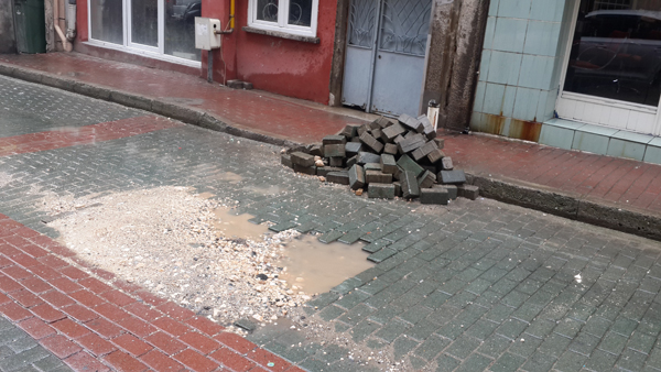 Nalbantoğlu Akbıyık Caddesi’nde esnafız. Caddemiz, yaklaşık bir buçuk haftadan beri fotoğrafta görüldüğü gibi duruyor. BUSKİ geldi sorunu halletti ama bu şekilde bıraktı gitti. Bu durumun en kısa zamanda düzeltilmesini bekliyoruz. Saygılarımla…
