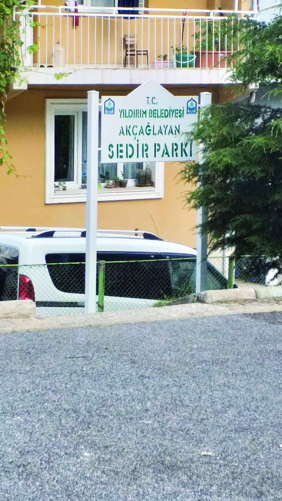 Size Yıldırım ilçesi Akçağlayan Mahallesi’nden yazmaktayım. Size gönderdiğim fotoğrafta da görülebileceği gibi, çocuklarımızın oyun alanı olan Sedir Parkı ve parktaki oyun aletleri kış dönemi boyunca yağan yağmurlar sonucunda oldukça bakımsız kaldı. Oyun aletleri şu an çamurdan kullanılamaz durumda. Yıldırım Belediyemizden ricamız Sedir Parkı’nın elden geçirilerek semtimize yakışır hale getirilmesi ve çocuklarımızın güvenle oyun oynayabileceği bir alana kovuşturulması.