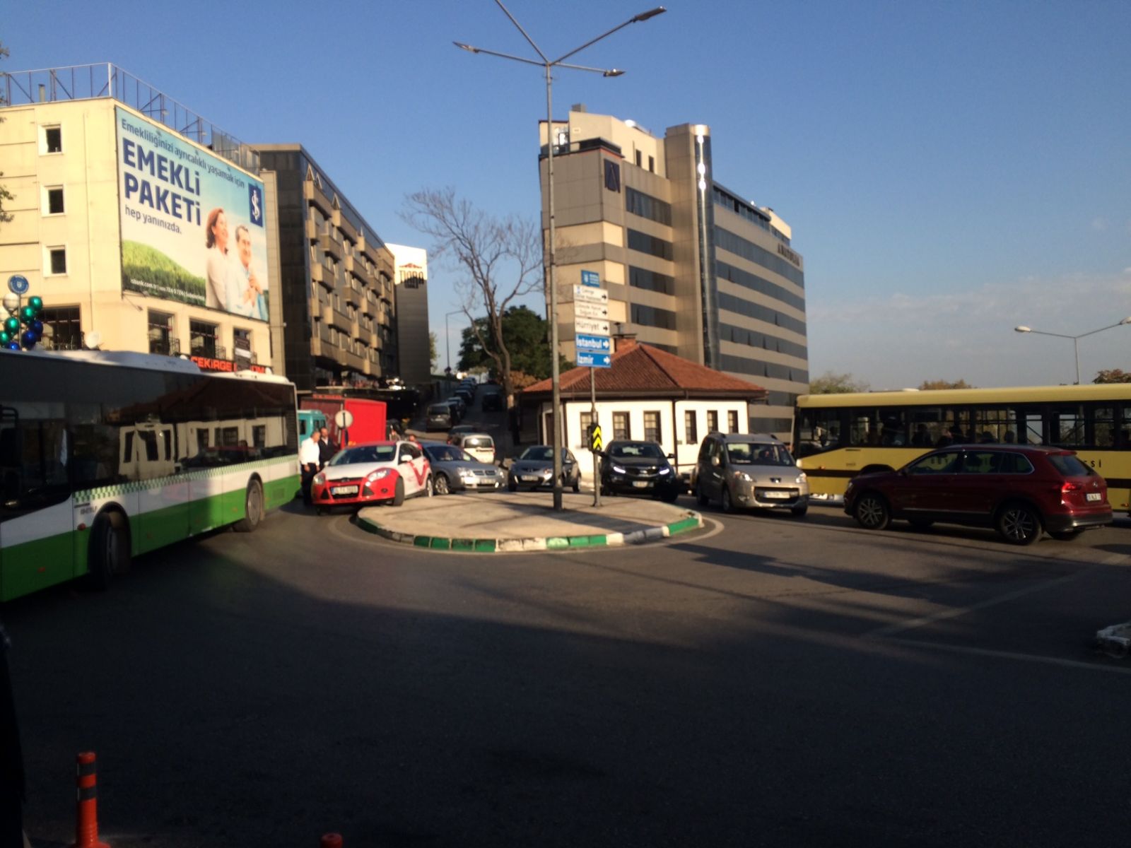 Zaten yetersiz caddeler ve yoğun trafiğe bir de yolun daralması eklenince manzara bu hale geldi.