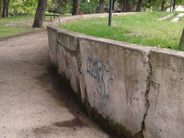 Hamitler Teoman Özalp Parkı’ndaki (çocuk eğitim merkezinin arkası) beton duvar iyice yatmış, gerilmiş. Her an devrilebilir. Geçen yıldan bu zamana kadar 4,7 cm daha yatmış. Burası çocukların yoğun olduğu yer. Dikkate almak gerekir.
