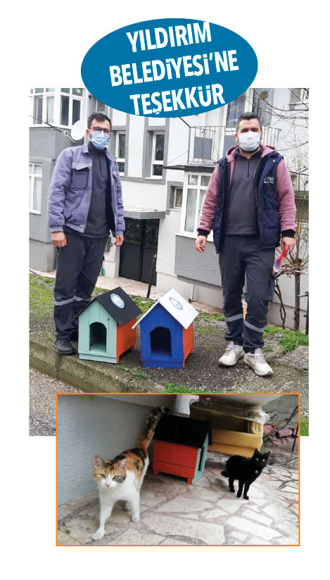 Söz Sizde köşesi aracılığıyla Yıldırım Belediyesi’ne, ilgili birimlerine ve kapımıza kadar kedi evlerini getiren görevlilere teşekkür ediyoruz.