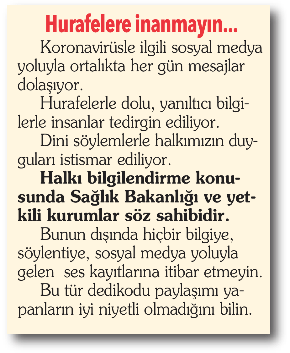 Sonuç olarak, dedikodulara değil, ilgili ve yetkili makamların uyarılarını dinleyin. Hep birlikte bu sıkıntılı süreci atlatalım.