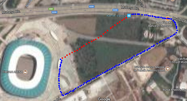 Yeni stadımız Büyükşehir Belediye Stadı’nın açılışının üzerinden neredeyse 2 sene geçmiş olmasına rağmen otoparkların henüz tamamlanmaması sebebiyle stada metro ile gidip gelmekteyiz. Fakat metrodan stada, gidiş ve dönüş uzatılan yol yüzünden tam bir eziyet, normalde 300 metrelik mesafe (fotoğrafta işaretli uzun yol) şu anda insanlara neredeyse 2 km (fotoğrafta işaretli kısa yol) olarak yürütülüyor.