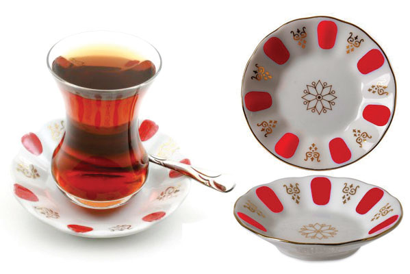 Geleneksel ince belli bardaklarımızdaki çay servisi bu tabaklarla servis edilince daha bir hoşumuza gidiyor ve sanki çay içme seremonimizi tamamlıyor gibi…