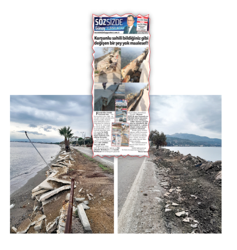 Uzun süredir Gemlik Kurşunlu sahili ile ilgili sorunu okurlarınız sayesinde köşenize taşıyarak gündemde tuttunuz. Ve sonunda Büyükşehir Belediyemiz konuya el atarak Kurşunlu sahilinde kısmen de olsa çalışmaların başladığını gördüm.