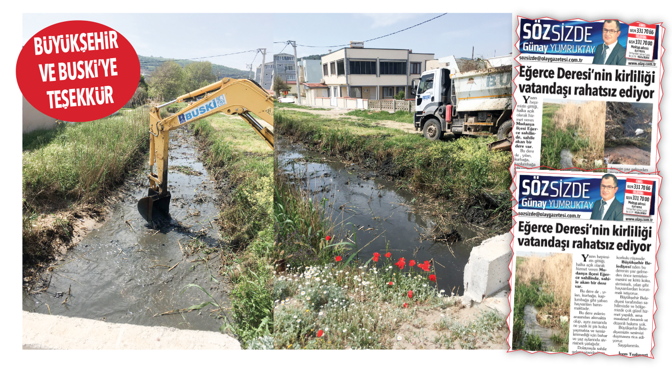 Günay Bey merhaba. 10 Nisan 2021 ve 23 Nisan 2021 tarihlerinde “Eğerce Deresi’nin Kirliliği Vatandaşı Rahatsız Ediyor” başlığıyla vatandaşın sesi olan Söz Sizde köşesinde yer verdiğiniz sorunumuz sizin ilginiz ve yetkililerin duyarlılığıyla çözümlendi.