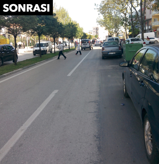 Bunun sebebi kaldırımların önceki halinden aşırı bir şekilde geniş tutulmasıdır. Bu genişlikte bir kaldırım Atatürk Caddesi’nde bile yoktur. Kaldı ki bu cadde yaya trafiğinin seyrek olduğu bir caddedir. Caddedeki en büyük sıkıntı bahsettiğim bölgeye kadar 2 şeritli devam eden yol bir anda tek şeride inmektedir ve kazalara da davetiye çıkarmaktadır.