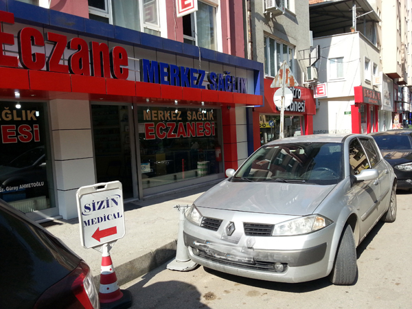 Şehrin pek çok yerinde alışageldiğimiz görüntülerden biri daha. Park edilmez levhası ile turuncu dubalar olmasına pek aldırış eden yok. Trafik ve belediye görevlileri de ortada görünmeyince günün her saatinde her yer park yeri.