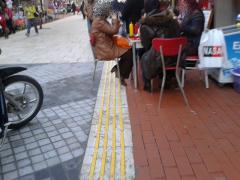 Fotoğrafta da görünmekte. Görme engelliler için yapılan yürüyüş yollarının ne işe yaradığını bilmeyen kimi esnafın başvurduğu yönteme dikkati çekiyorum. Görme engelliler için yapılan yolu sorumsuzca yürünmez hale getirmeleri görünmektedir.