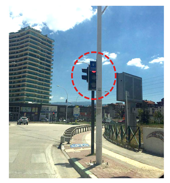 Trafik sinyalizasyon lambası ile aydınlatma direği çakışıyor