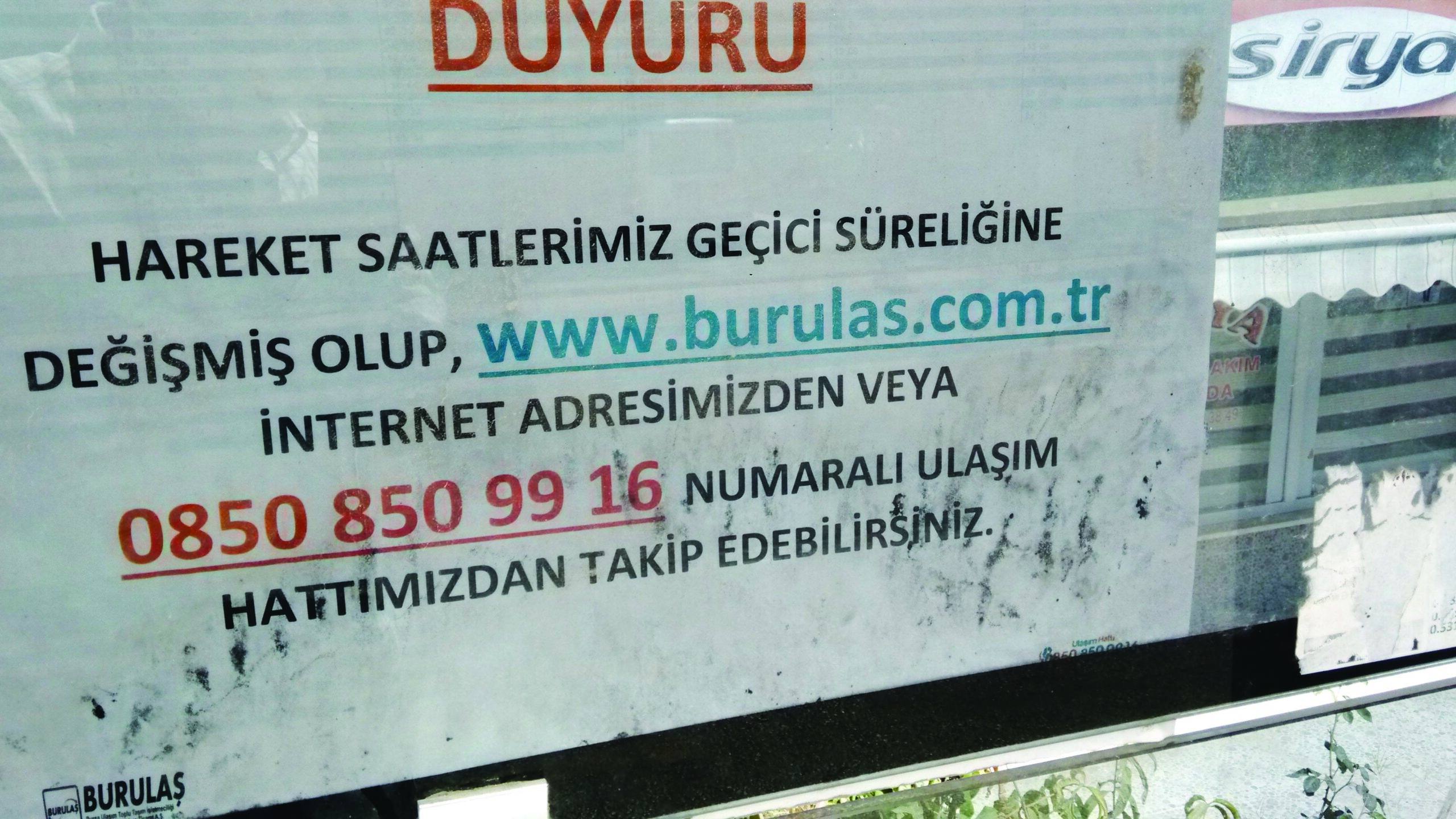 Bu duyuru Covid-19 pandemisi başladığında otobüs duraklarına iliştirilmişdi.