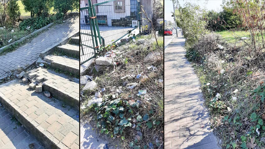 Öte yandan, kaldırımların ve parke taş döşeli merdivenin hali de berbat.