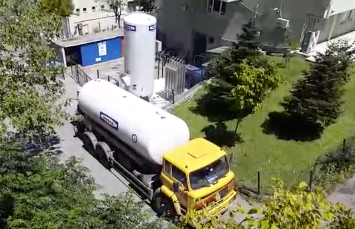 Son zamanlarda hastalara oksijen temin etmek için fotoğrafta da görüldüğü gibi bir tanker diktiler.