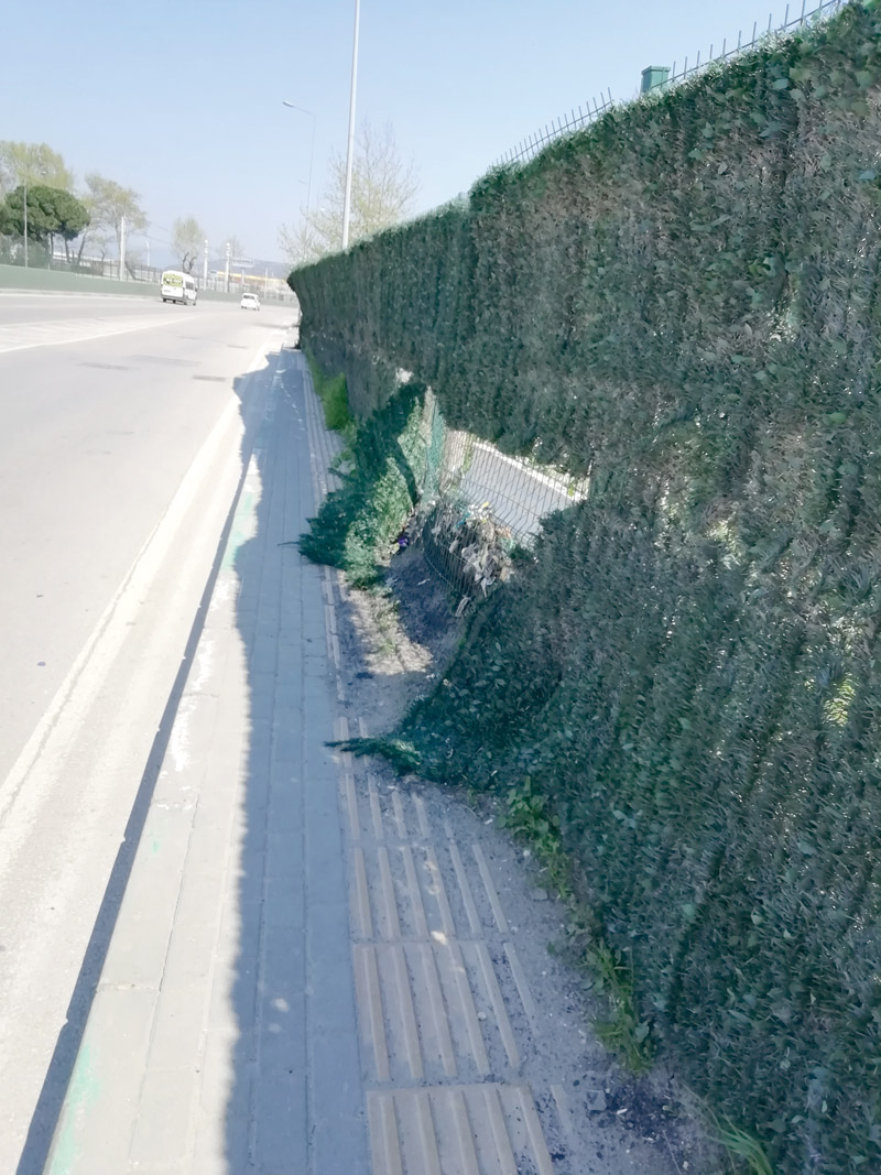 Ankara yolu üzeri Gürsu Kavşağı’nın biraz ilerisindeki kaldırımdaki yeşil tel örgü kırılmış, hasar görmüş.